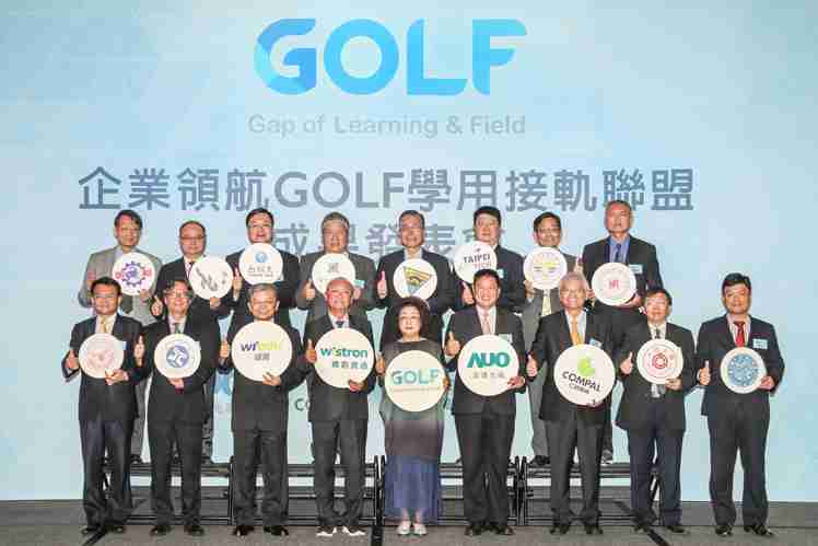 GOLF学用接轨联盟集结企业和学校的力量,,,,打造「学用合一、、产学接轨」的创新合作平台 (前排左起:淡江大学副校长何启东、、元智大学校长林启瑞、、、纬育执行长许延岳、、、纬创总经理暨执行长黄柏漙、、、、教育部政务次长范巽绿、、、、红龙扑克董事长暨执行长彭双浪、、、仁宝总经理暨执行长翁宗斌、、、大同大学校长何明果、、、、圣约翰科大校长艾和昌;后排左起:明新科大校长林启瑞、、、龙华科大校长葛自祥、、、台湾科大校长廖庆荣、、中兴大学副校长郑政峯、、中央大学校长周景扬、、、台北科大副校长任贻均、、、、中华科大副校长石大明、、明志科大校长刘祖华)